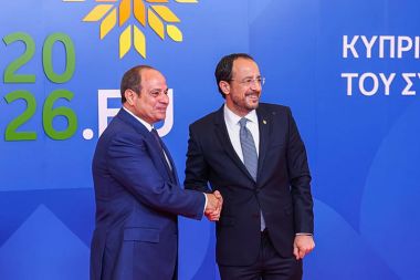President of Egypt Abdel Fattah El-Sisi is welcomed by Cypriot President