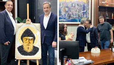 MP Michel Moawad with Elie John Dib The meeting included a presentation on the situation of the Lebanese community in Australia, as well as a discussion of the most prominent developments on the Lebanese scene. Mr Moawad praised the successful careers of Jean and George Dib and their significant contributions to the Australian-Lebanese community. The issue of registering expatriates to participate in the upcoming parliamentary elections was also discussed, with attendees emphasising the importance of registration and active participation in this national event. The visit coincided with John Dib's birthday, and a cake was cut in the presence of Mr Moawad and the accompanying delegation to celebrate the occasion. |